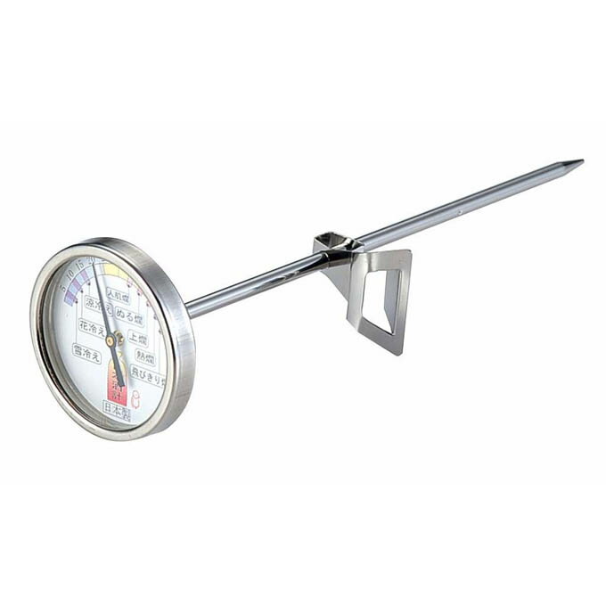 商品仕様 ●材質:ステンレス PCカバー ●サイズ:直径45x164mm ●測定範囲:0〜60℃ ●原産国:日本製 商品の特徴 ●日本酒の熱燗温度を計るための温度計です。