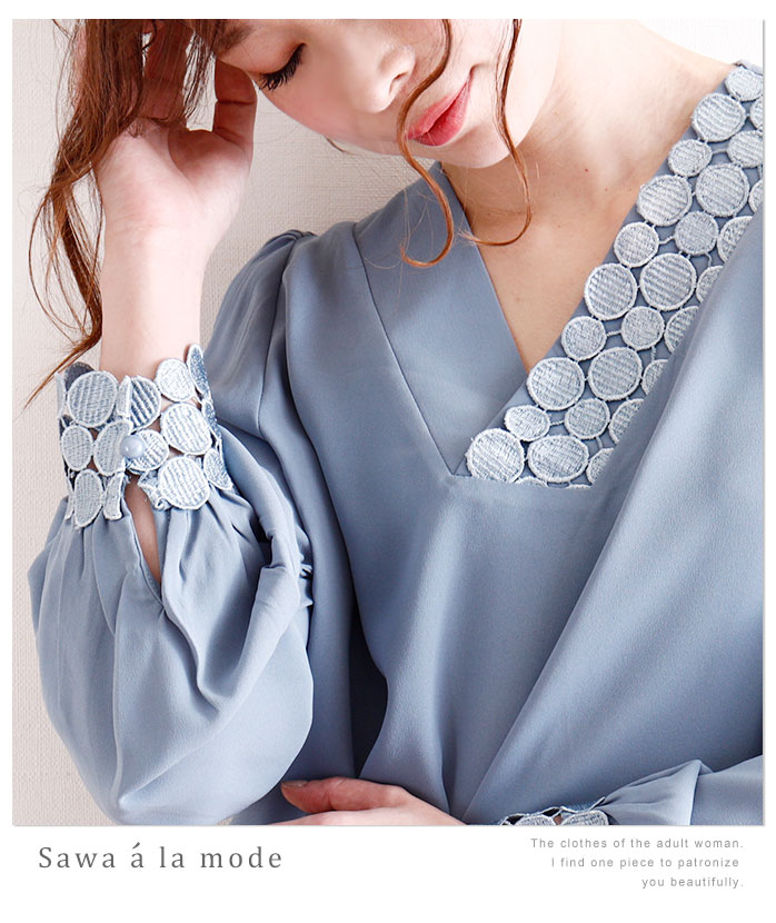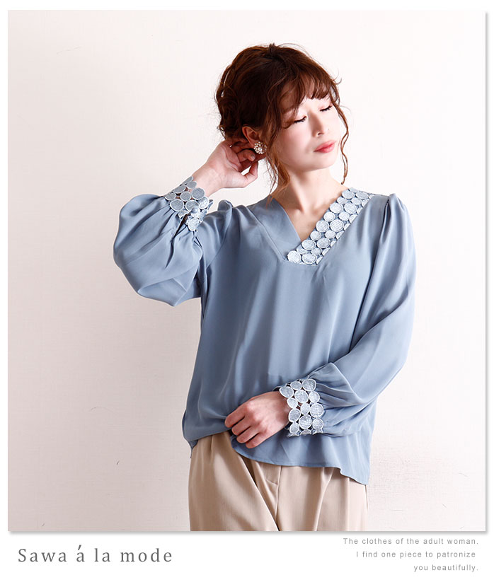 レディースファッション トップス シャツ ブラウス 長袖 レース 刺繍 ドット 水玉 長袖トップス レディース 秋服 秋冬 冬 冬服 春服 青 春 秋 可愛い 綺麗め お洒落 オフィスカジュアル 大人 可愛い 大人可愛い 30代ファッション 40代 50代 サワアラモード otona kawaii