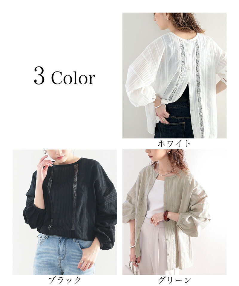 メーカー希望小売価格はメーカー商品タグに基づいて掲載しています→コチラ! メール便 送料無料 レディース 大きいサイズ トップス ブラウス 長袖 刺繍レース 前後2way バッグボタン ノーカラー ミドル丈 ドロップショルダー オーバーサイズ ゆったりシルエット 綿100% 羽織り ブラック ホワイト XL L M 春 夏 2021ss クラシカルエルフ ce1020011