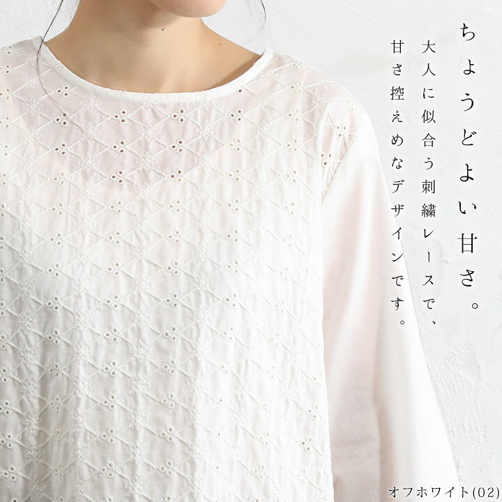 ブラウス シャツ 七分袖 綿100% インド綿 刺繍ブラウス レディース プルオーバー シャツブラウス ギャザー レース トップス 五分袖 薄手 無地 コットン 体型カバー ゆったり 大きいサイズ 春 夏 ナチュラル 服 [M便 1/1]