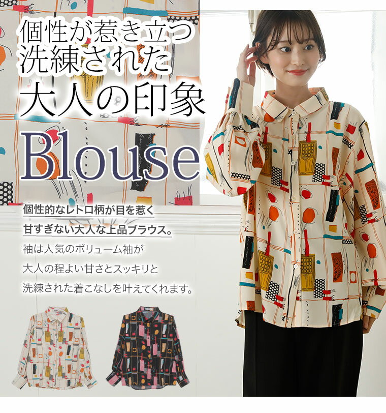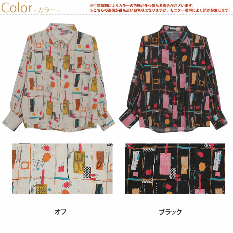 【全品10%オフクーポン5/6 9:59まで】 大きいサイズ レディース シャツ | デシン POP柄 プリント ロングカフス シャツ ぽわん袖 レトロ柄 _ シャツ ブラウス トップス LL 3L 4L 秋 秋物 秋服 冬 冬物 冬服 ぽっちゃり ゆったり [TG35093LL-1/TG35093LL-3] 【メール便可】
