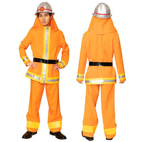 ≪Costume/Halloween≫ MENコス ファイヤーマンオレンジのジャケットが目を引く消防士コスチューム。